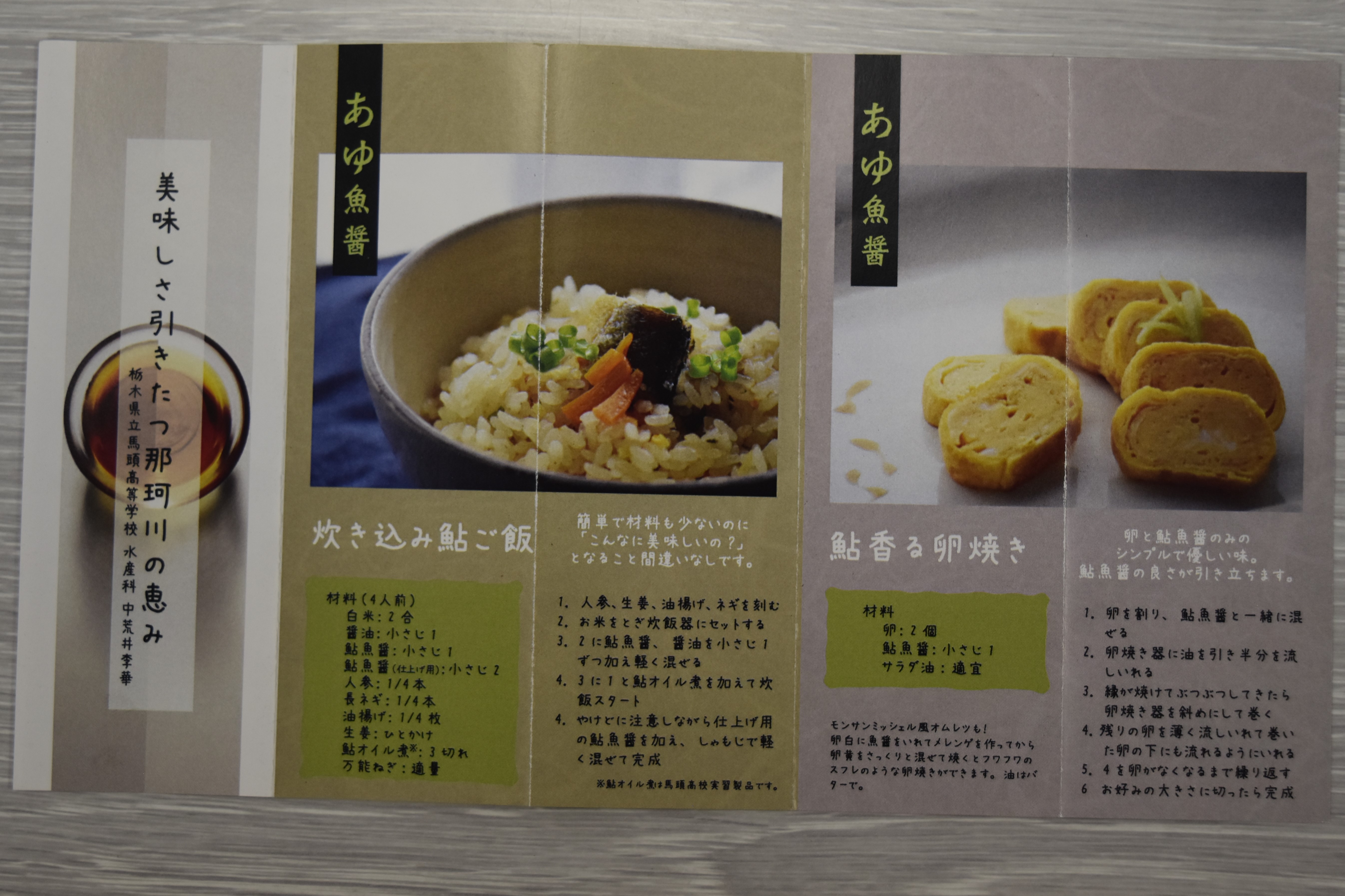 瓶のラベルに加えて、美術部に所属している2人のメンバーが、絵を描くという特技を生かして、魚醤を使った卵焼きや焼きおにぎりなどが掲載されたレシピ集や、開発までのストーリーをマンガで表現し、消費者に魚醤をもっと親しみやすいものにするために工夫した点を話してくれました。生徒たちは、「デザインをたくさん出して、1つできてもその案がボツになっての繰り返しで、決まるまでが大変だった」と話しましたが、今回出来上がったパッケージのできをとても気に入り、満足しているようでした。