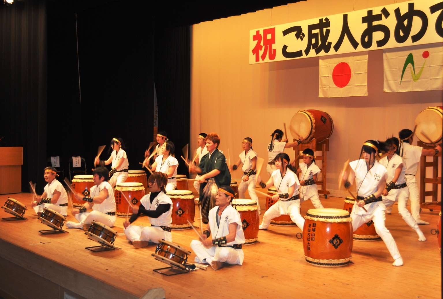 式典の前には「那須小川まほろば太鼓」の演奏があって、大迫力な太鼓の演奏に圧倒されちゃった!式典には多くの来賓や保護者の方もみえて、厳かに行われたわ。新成人者のピアノ伴奏や成人者代表謝辞も立派だったわ♪