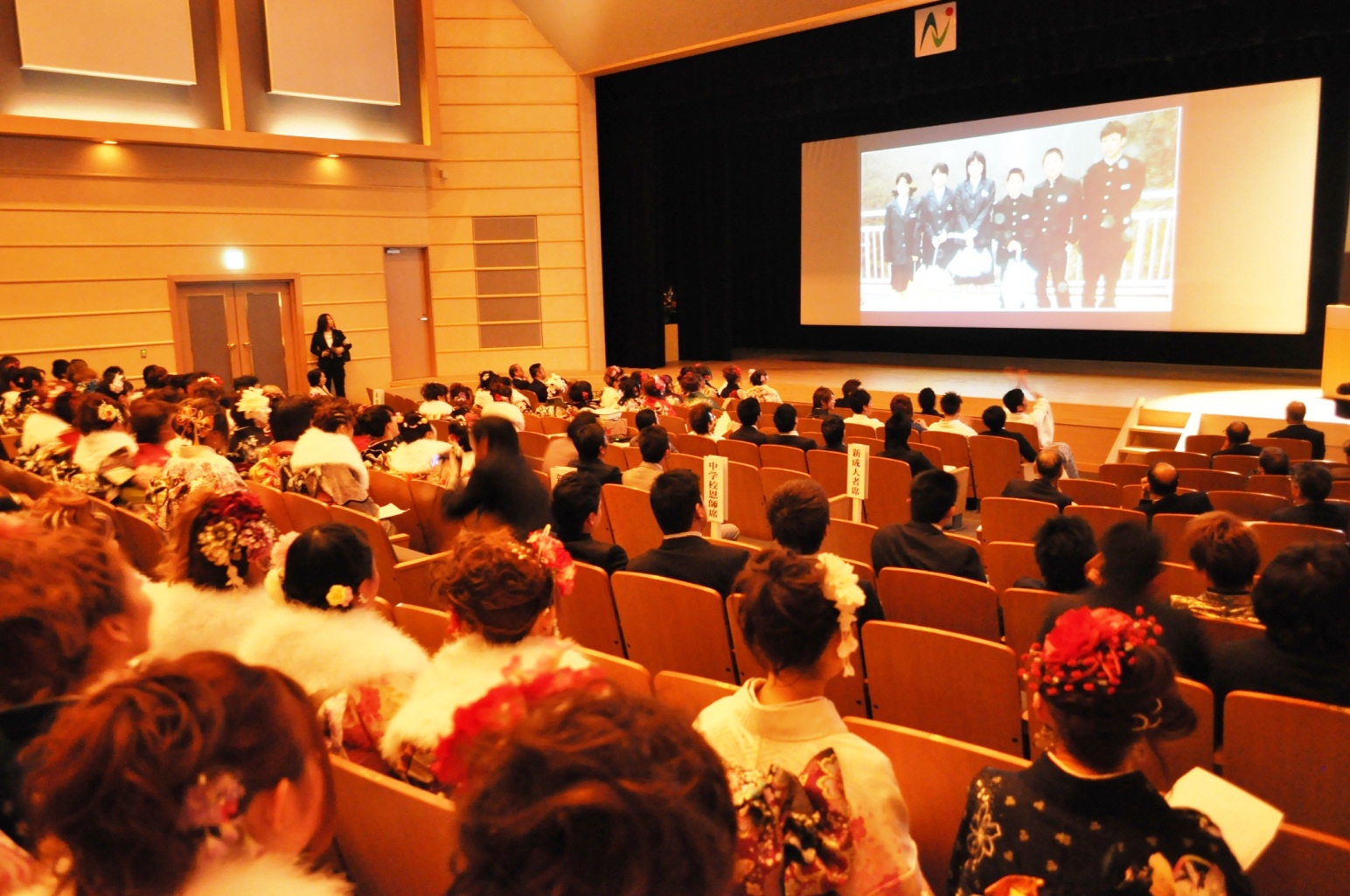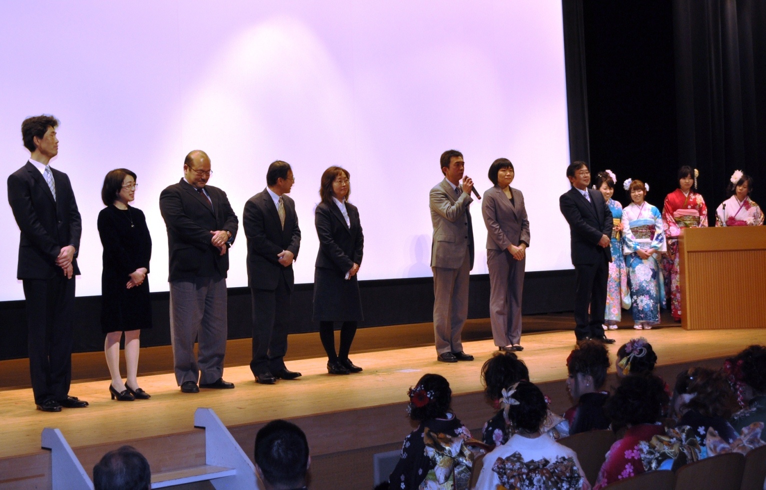 今年の成人式も「成人式実行委員会」の皆さんが毎月集まって、記念アトラクションの企画をしてくれたの☆ 「思い出の写真スライドショー」では中学時代の懐かしい写真に大盛り上がりで、「恩師からのお祝いのことば」では先生の温かい言葉にわたしも胸を打たれたわ♪