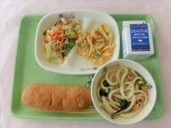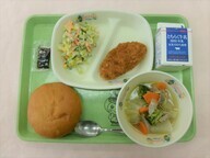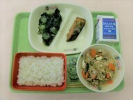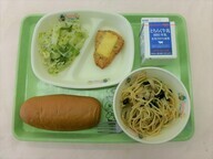 | 1月8日(木) キャラメルパン 牛乳 チキンチーズ焼き グリーンサラダ 和風スパゲティ |